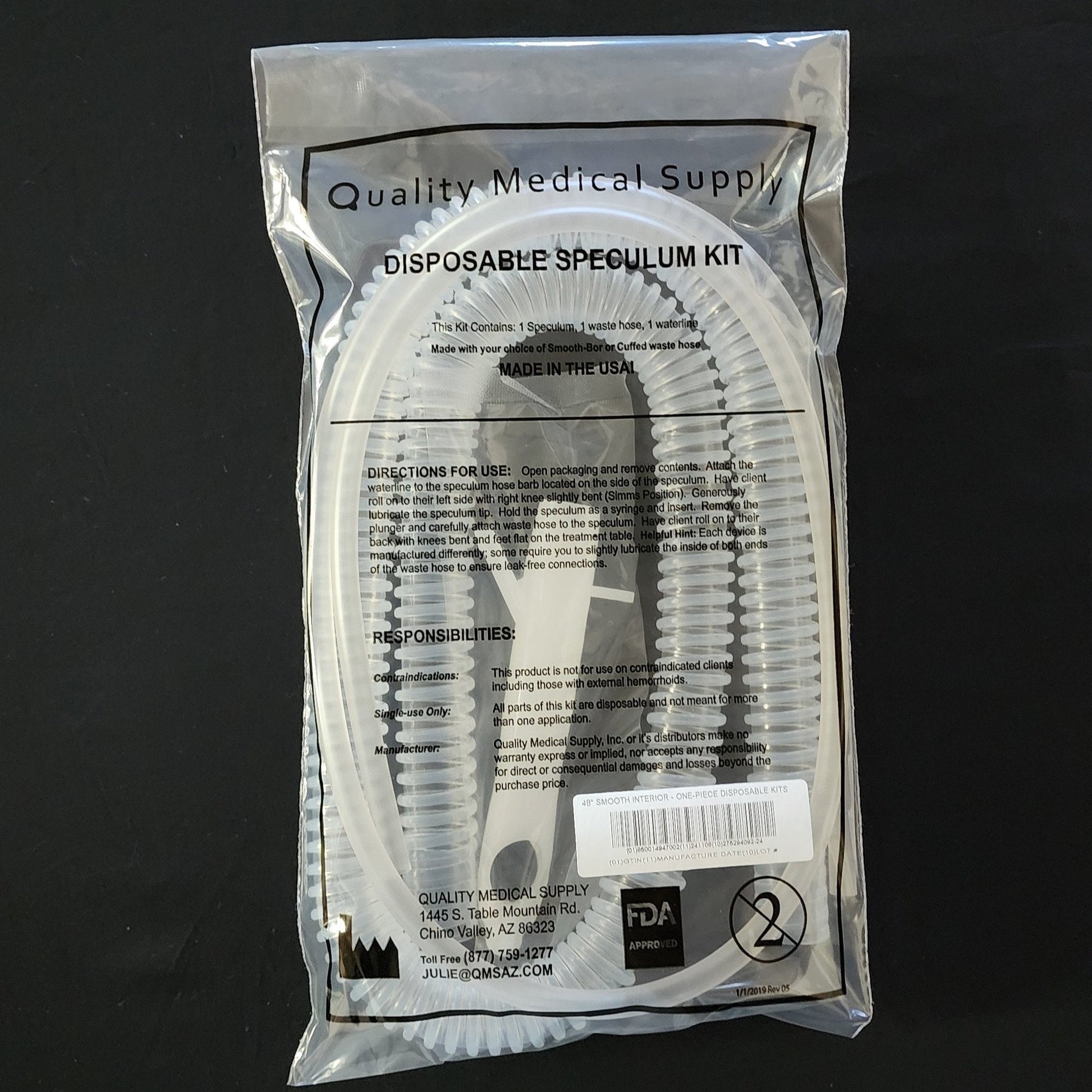 48" Smooth Interior Hose Disposable Kit With One-piece Speculum (Black Bag) comes in case quantities of 25, 50, or 100
